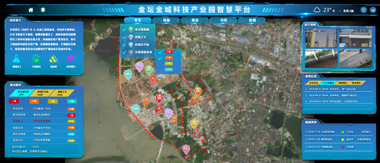 结合园区实际需求进行定制扩展,完成园区安全、环保、封闭管理、应急以及能源等方面的监控监管,实现对园区企业安全生产、环境保护、封闭管理、能源的实时动态监管和封闭化管理要求,促使园区各项监管工作更加智能化、精准化和便捷化,为园区安全生产、环境保护监管提供助力。